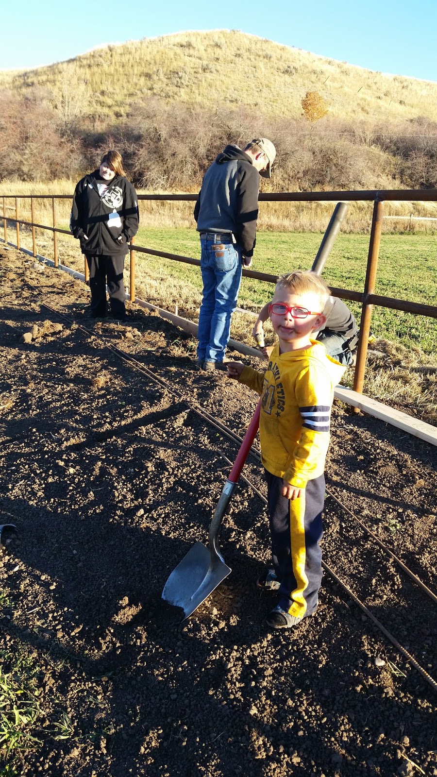 | Treyson was the master sleigh riding trail builder - with a little help from Thatcher on his back. |