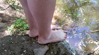 | Landon kept getting snags, and took off his shoes to wade in and unhook the spinner. |