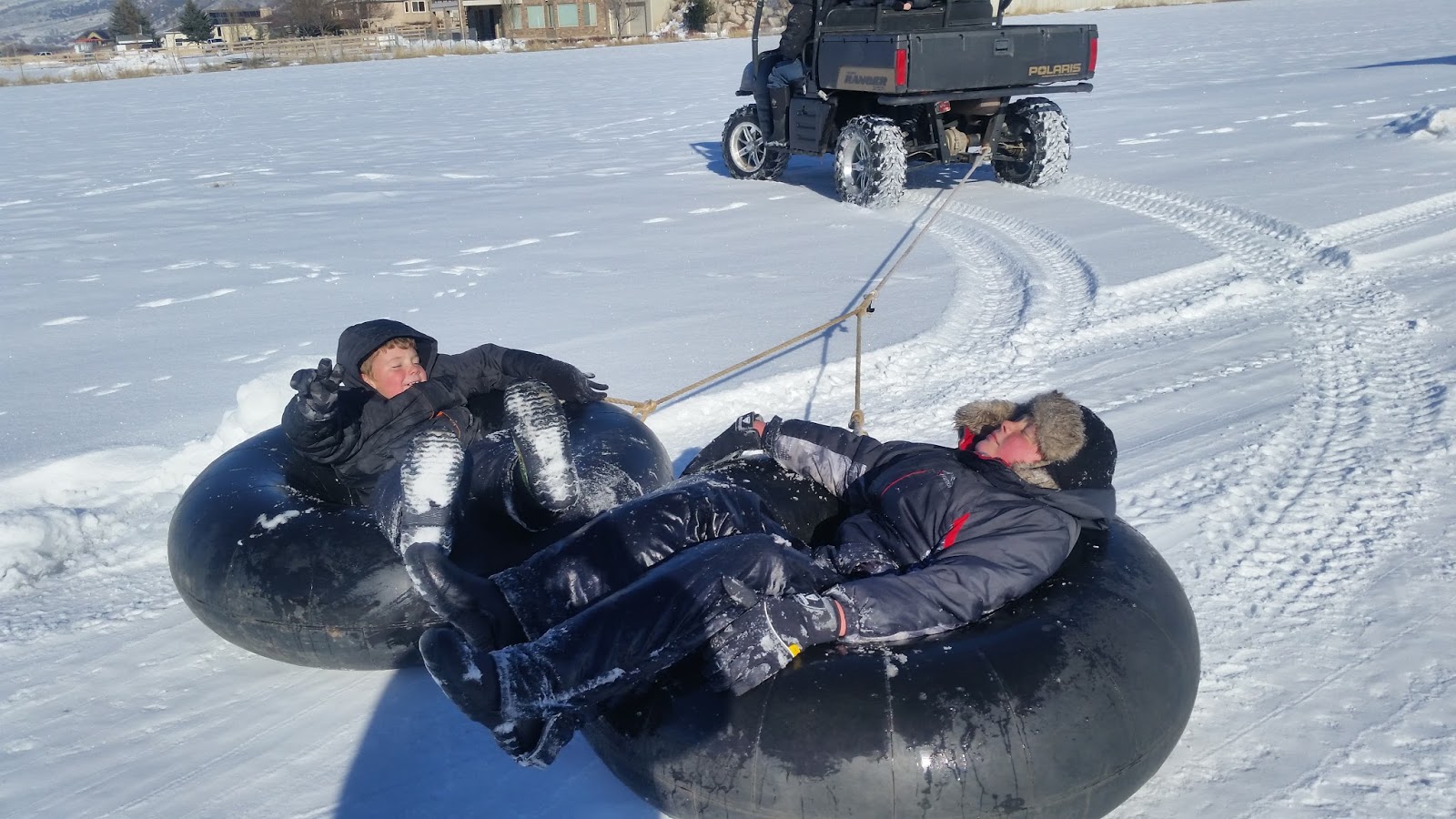 | 2016 - Toboggon kids Thatcher, Brightyn (we finally got her on), Payson, Tagg (some neighbors dog - we don't know whose) |